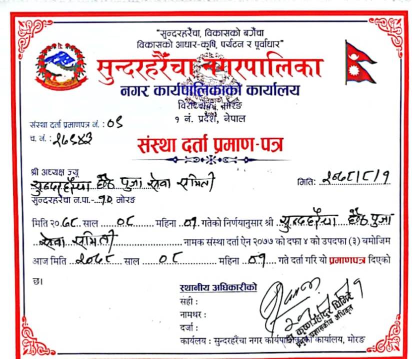 श्री सुन्दरहरैचा छैठ पूजा सेवा समिति, मोरङ्ग